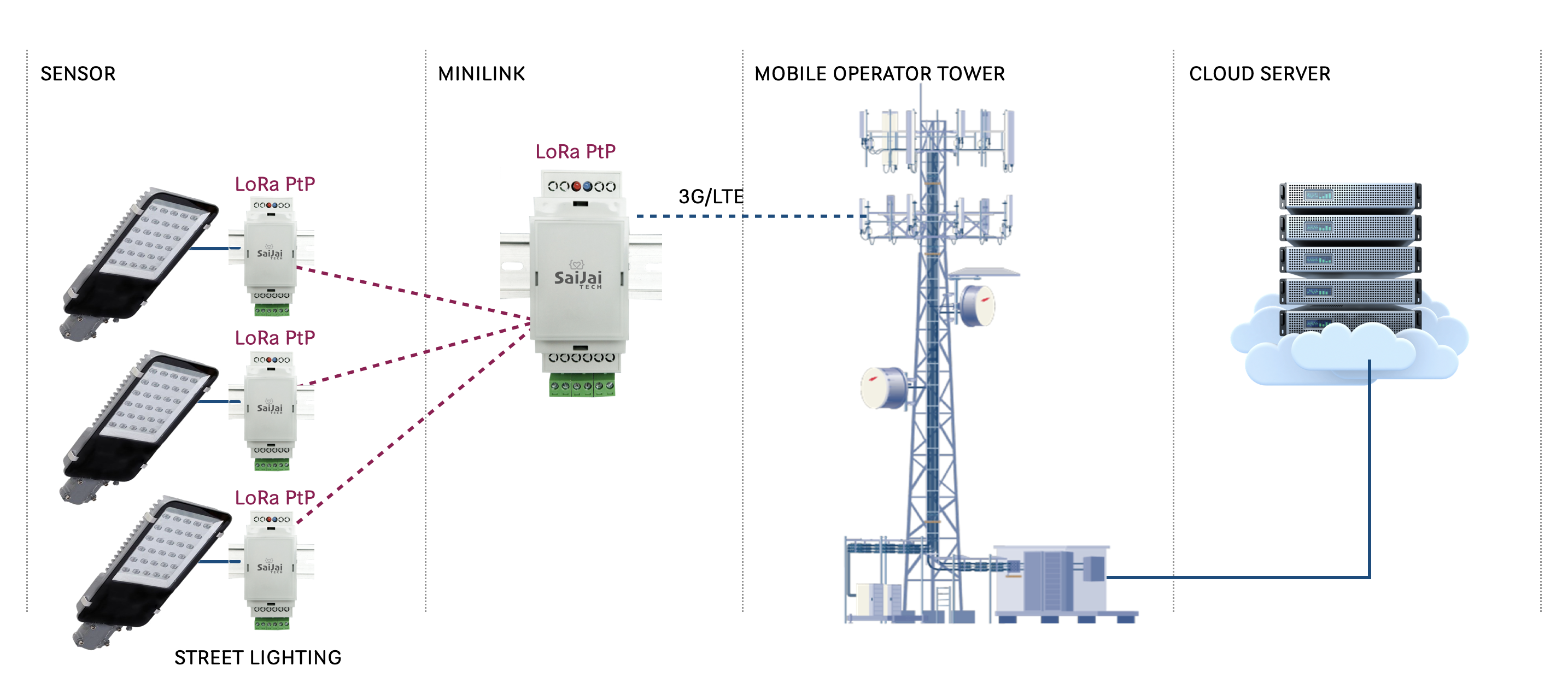 6) ใช้โหนด MiniLink IIoT ควบคุมโคมไฟถนนหลายตัวโดย LoRa PtP สั่งการทางไกลผ่าน 3G/LTE