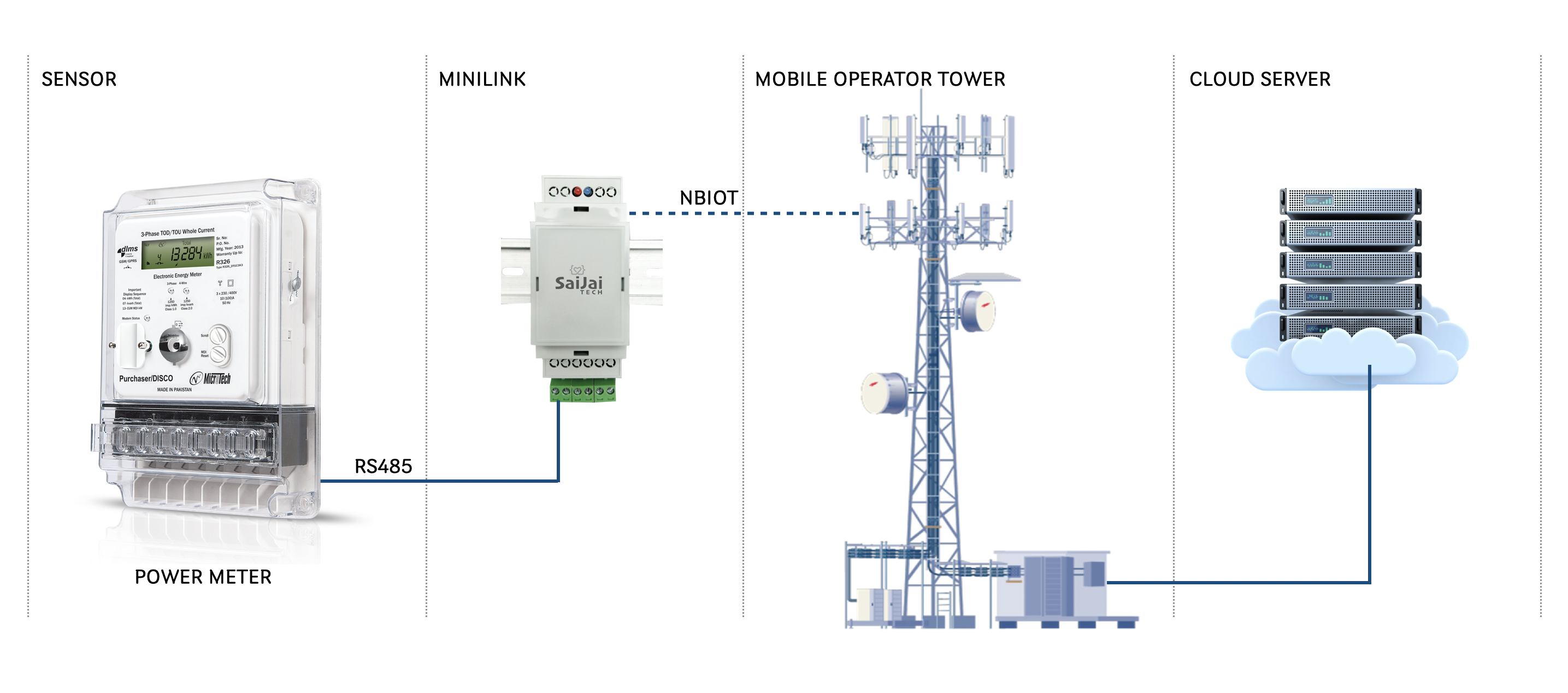 3) ใช้โหนด MiniLink IIoT อ่านค่าสมาร์มิเตอร์แล้วส่งอัพลิงค์ข้อมูลผ่าน NB-IoT