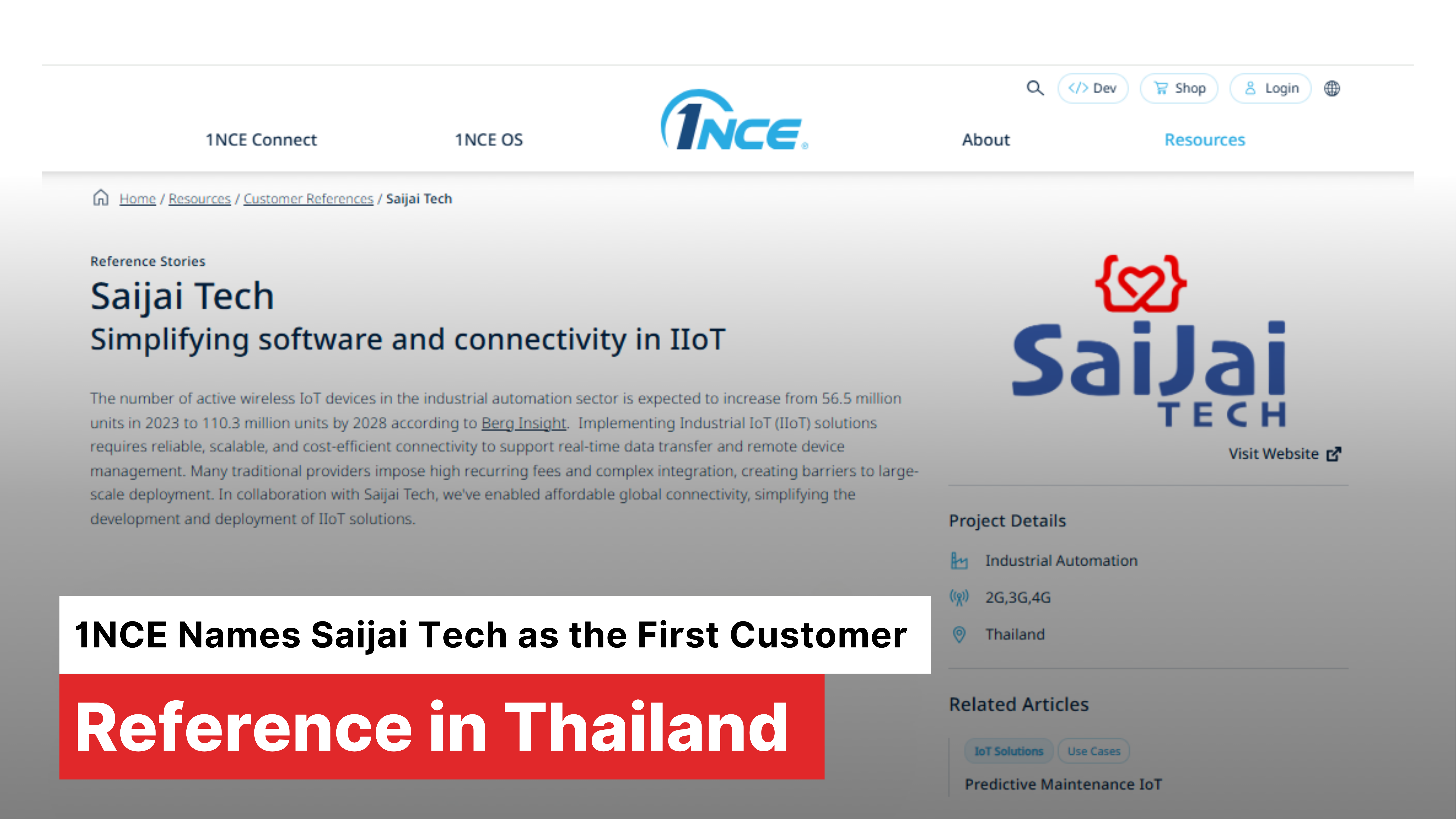 1NCE Names Saijai Tech as Thailand’s First Reference